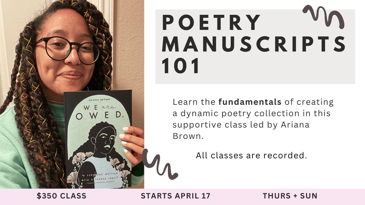 - Enrollment in Poetry Manuscripts 101 6-week virtual class, which meets twice a week (Thursdays and Sundays) from April 17 to June 1.