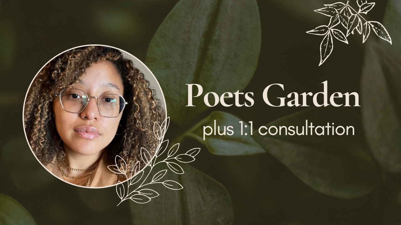 - 3-month membership in Poets Garden, a virtual cohort offering led by Ariana Brown, to take place fromĀ Feb 5 - April 23, 2026.