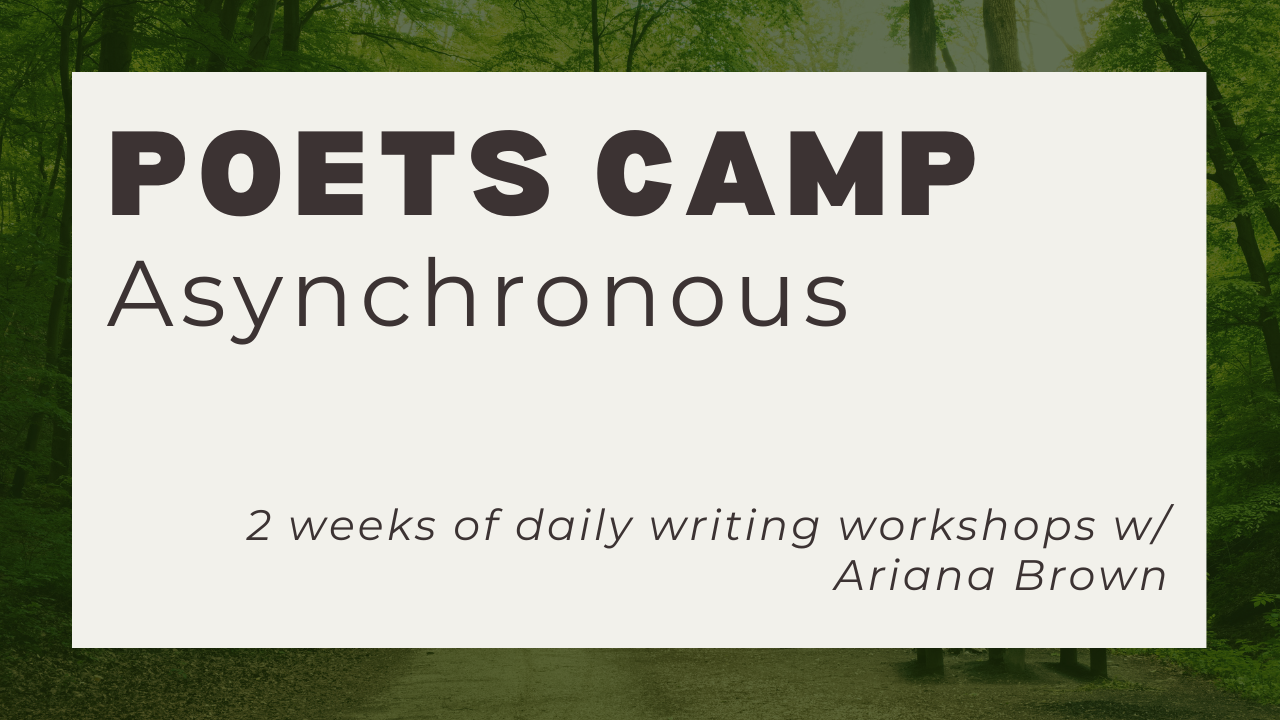 Write new poems in a daily 2-hour generative workshop taught by Ariana Brown focused on the experiences of writers of color, ending with a celebratory open mic! This is neither a craft workshop nor a class. We are all about messy first drafts and having fun. Seriously!